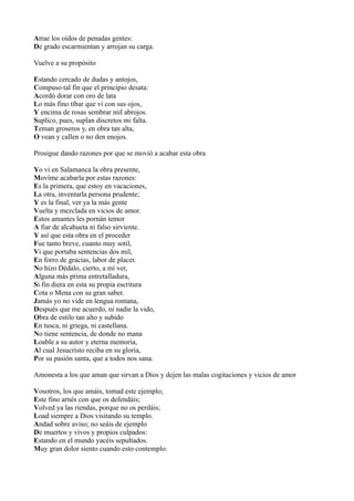 El autor resume un largo poema que escribió sobre el amor. Explica que cometió errores en la obra y que ahora la critica. Resalta que el silencio a menudo es mejor que hablar sin sentido y cometer errores. Luego resume la trama del poema, donde compara a quien intenta volar sin alas con aquellos que hablan sin sentido. Finalmente, invita a los lectores a amar a Dios en lugar de perseguir vicios del amor.