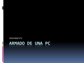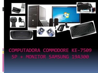 Este documento describe la configuración de una computadora personal ensamblada con las siguientes especificaciones: procesador Intel Core i5 2300, 4GB de RAM, disco duro de 1TB, tarjeta de video Nvidia GeForce 9500GT de 1GB, monitor Samsung de 18.5 pulgadas, teclado y mouse inalámbricos Microsoft, modem router Linksys X2000, placa de red TP-Link, parlantes Stromberg, webcam Microsoft Lifecam HD 3000, 6 puertos USB, e impresora HP 7500.