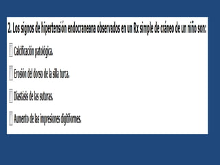 El documento habla sobre una actividad práctica de radiología cuyos objetivos son identificar diferentes estudios de radioimagen y explicar imágenes radiológicas en radiología convencional del sistema nervioso central y tórax. Menciona varias condiciones médicas como osteofitos, fracturas, artritis reumatoidea, osteoporosis, y diferentes tipos de calcificaciones que pueden verse en imágenes radiológicas.
