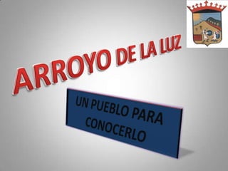El documento proporciona información sobre el municipio español de Arroyo de la Luz en la provincia de Cáceres. Con casi 6,300 habitantes, Arroyo de la Luz es el municipio más poblado de su comarca y limita con Cáceres. El pueblo es conocido por su patrimonio histórico que incluye la iglesia parroquial y el retablo de Luis de Morales, así como por su gastronomía tradicional y la fiesta anual del Día de la Luz.