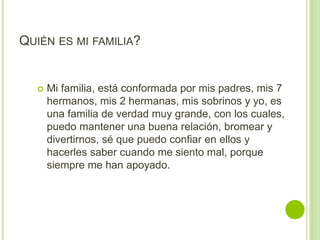 Victoria presenta a su familia, la cual está compuesta por sus padres, 7 hermanos y 2 hermanas, y dice que disfruta pasar tiempo con ellos. También le gusta escuchar música, estar con amigos y familia, y leer y escribir. No le gustan la gente que busca atención, esperar, ni las enchiladas. Su futuro incluye terminar su carrera, viajar, conocer México, formar una familia y ayudar a sus padres y hermanos. Para lograr sus metas necesita disciplina y confianza en sí misma, y