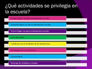 Este documento trata sobre el ambiente de la escuela como un factor que influye en la efectividad escolar. Algunas de las principales preocupaciones del personal directivo y docente sobre las actividades escolares son que los alumnos no muestren interés, no entiendan los procedimientos o sean antipáticos. El clima de trabajo está relacionado con el entusiasmo de los directivos, maestros y personal para realizar las actividades. El ambiente de trabajo también se refleja en las actitudes y expectativas de los alumnos.