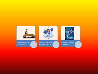 Este documento es una línea de tiempo autobiográfica que resume hitos importantes en la vida de la persona desde su nacimiento el 8 de enero de 1994 hasta los 15 años. Algunos eventos clave incluyen empezar a gatear a los 5 meses, su primera Navidad a los 11 meses, ir a kinder con miedo pero recibir un perro como regalo, mudarse a Estados Unidos a los 7 años, y actualmente asistir a la preparatoria para prepararse para la vida.