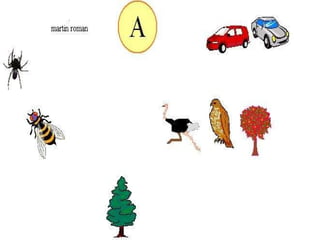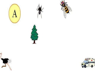 El documento presenta una actividad para estudiantes del primer ciclo de primaria donde se les pide que busquen cosas que comiencen con la letra A.