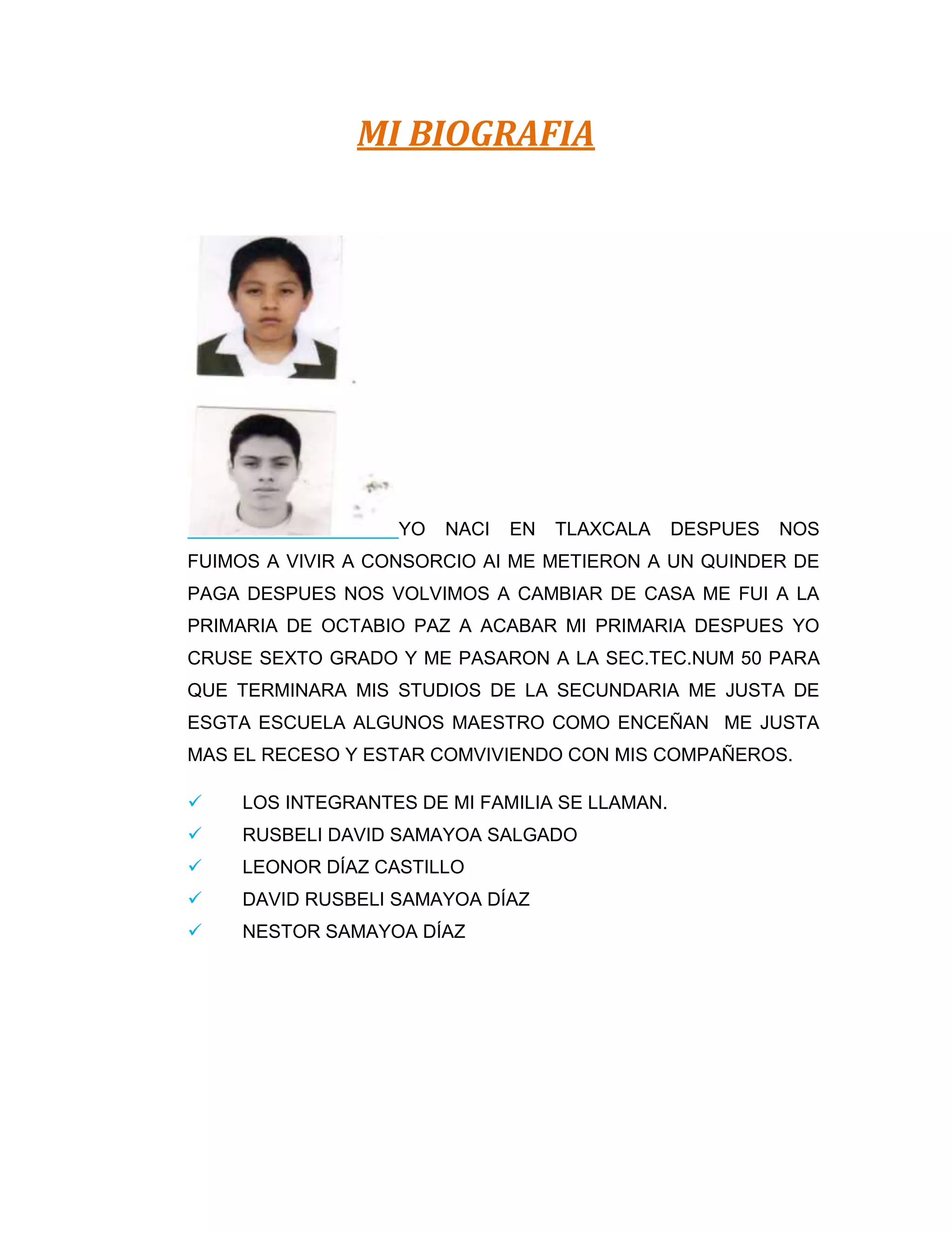 El autor nació en Tlaxcala y se mudó a vivir a Consorcio. Asistió a la primaria Octavio Paz y completó la secundaria en la escuela Tec. Num 50. Disfrutaba más del recreo y convivir con sus compañeros que las clases. Su familia incluye a Rusbeli David Samayoa Salgado, Leonor Díaz Castillo, David Rusbeli Samayoa Díaz y Nestor Samayoa Díaz.