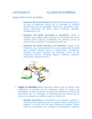 ACTIVIDAD 2.                         –CLASES DE EMPRESAS.