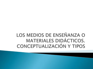 Este documento trata sobre los materiales didácticos, que son recursos elaborados y utilizados en contextos educativos para transmitir información de manera codificada. Los materiales didácticos incluyen libros, folletos, medios audiovisuales y recursos digitales. El proceso de diseño de estos materiales implica establecer objetivos educativos, seleccionar contenidos, analizar el proyecto curricular y las características de los estudiantes, y determinar los recursos técnicos necesarios.