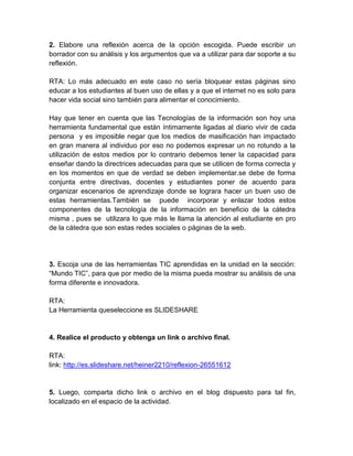 Un profesor quiere usar computadoras en su clase pero observa que los estudiantes solo usan Facebook. Él le comenta a la institución, la cual decide bloquear páginas como Facebook, Twitter y YouTube. Sin embargo, en lugar de bloquearlas, sería mejor educar a los estudiantes sobre el buen uso de la tecnología y cómo aprovecharla para alimentar el conocimiento.