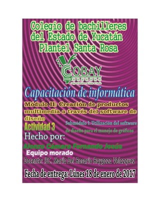 El documento instruye a investigar la diferencia entre gráficos vectoriales y mapas de bits, publicar la información en un blog, y comentarla con otros equipos. Explica que los gráficos vectoriales usan matemáticas para dibujar líneas que pueden escalarse sin pérdida de calidad, mientras que los mapas de bits usan pixeles de color fijos que pueden perder calidad al escalar.