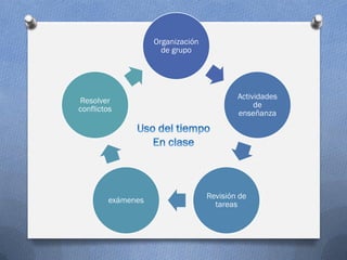 El documento describe cómo los estudiantes dedican más tiempo a actividades como clases, tareas y exámenes. Sin embargo, también malgastan tiempo distrayéndose con amigos, comiendo y participando en eventos sociales y deportivos extracurriculares. El tiempo que los estudiantes dedican a actividades distintas a la enseñanza afecta negativamente su formación académica ya que no logran absorber todos los temas debido a la falta de tiempo.