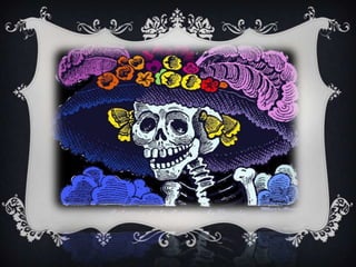 El Día de Muertos es una celebración mexicana que honra a los ancestros el 2 de noviembre, coincidiendo con el Día de los Fieles Difuntos católico. Sus orígenes se remontan a más de 3,000 años atrás entre las civilizaciones mesoamericanas como los aztecas, mayas y purépechas, quienes realizaban rituales para celebrar las vidas de los ancestros. Aunque trata sobre la muerte, esta festividad se celebra de manera alegre y relajada, enfatizando la celebración
