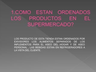 La tienda organiza sus productos por estantes, separando alimentos de artículos de limpieza. Las bebidas se almacenan en refrigeradores visibles. Los proveedores revisan los productos varias veces por semana, reemplazando aquellos que están por vencer y colocando los nuevos al final de los estantes.