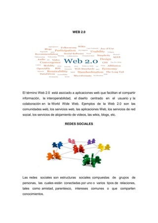 El documento resume conceptos clave relacionados con herramientas telemáticas como la Web 2.0, redes sociales, direcciones IP, DNS, medios de transmisión, hipertexto, Internet, buscadores, páginas web, blogs, correo electrónico, navegadores, foros, chats, mensajería instantánea, teleconferencia, comercio electrónico, multimedia, virus informáticos, spam, dominios y VPN.