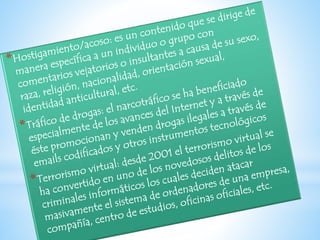 La ciberdelincuencia se refiere a acciones antijurídicas y culpables que ocurren en línea o que tienen como objetivo dañar computadoras, dispositivos electrónicos y redes de Internet. Debido a que la tecnología avanza más rápido que la legislación, algunas conductas criminales en línea no se consideran delitos según la teoría del delito y se definen como abusos informáticos que forman parte de la criminalidad informática.