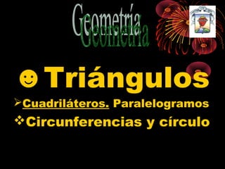 El documento aborda conceptos básicos de geometría para estudiantes de 1o de ESO, incluyendo triángulos, cuadriláteros, y elementos geométricos. Se detallan clasificaciones de figuras, propiedades, y operaciones con segmentos y ángulos. Además, se explican el círculo y la circunferencia, junto con fórmulas para calcular área y longitud.