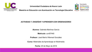 Este documento describe diferentes teorías del aprendizaje y métodos de enseñanza con ordenadores, incluyendo el conductismo, el procesamiento de información y el constructivismo. Explica características clave de métodos como la enseñanza asistida por ordenador, sistemas tutoriales inteligentes, proyectos LOGO y webquests. También discute el uso de blogs educativos, webquests y redes sociales, concluyendo que los ordenadores son una herramienta indispensable cuando se usan de manera planificada tomando en cuenta objetivos educat