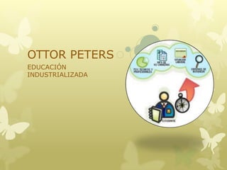 Este documento resume las teorías de tres teóricos clave de la educación a distancia: Otto Peters, quien propuso que la educación a distancia debe estar industrializada y basada en la división del trabajo; Michael Moore, conocido por su teoría de la distancia transaccional y la autonomía del estudiante; y Borge Holmberg, quien desarrolló la teoría de la conversación didáctica.