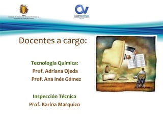 Este documento presenta un curso de Técnico Prevencionista sobre temas de química y prevención de riesgos. El curso está a cargo de tres profesores y tiene como objetivos principales enseñar el manejo seguro de productos químicos, identificar riesgos y efectos de procesos químicos, comprender señalización y medidas de protección, y disminuir el impacto ambiental de procesos industriales. El curso incluye nivelación en química y trabajos prácticos para abordar la ci