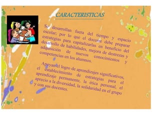 Las actividades extracurriculares tienen características y objetivos específicos para complementar la educación de los estudiantes y ayudar a corregir errores comunes en la recuperación pedagógica.