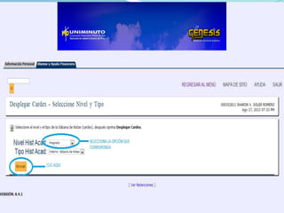 El Sistema Universitario UNIMINUTO ofrece educación superior de alta calidad y accesible para formar profesionales éticamente orientados. Su misión es ser reconocido por su contribución a la educación superior en Colombia a través de programas de calidad, amplia cobertura nacional y relaciones internacionales. El documento presenta los principios del Minuto de Dios, el reglamento estudiantil de UNIMINUTO con deberes, matrícula, traslados, homologación, exámenes y títulos.