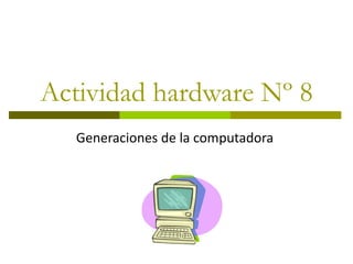 El documento describe las 6 generaciones de computadoras desde la primera generación en 1940 hasta la sexta generación actual. Cada generación se caracteriza por los componentes de hardware utilizados como tubos de vacío, transistores e integrados, y sus aplicaciones principales como procesamiento de datos, sistemas de reservas, tareas matemáticas y uso personal. El almacenamiento y lenguajes también evolucionaron entre generaciones desde tambores magnéticos hasta microprocesadores y PROLOG.