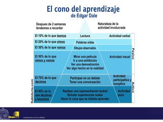 El documento presenta la historia de una universidad que diseña un programa de Maestría en Caza de Dragones. Los profesores proponen una variedad de cursos teóricos sin enseñar habilidades prácticas de caza. Los estudiantes se gradúan pero la mayoría no puede cazar dragones de forma exitosa, demostrando que es insuficiente enseñar solo contenidos sin facilitar el aprendizaje práctico.