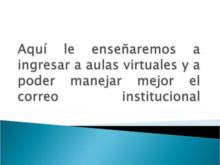 El documento proporciona instrucciones sobre cómo usar varias herramientas en un aula virtual, incluyendo cómo ingresar al aula virtual y actualizar la información personal, participar en foros, ver mensajes, agregar contactos, agregar una firma a los correos electrónicos, crear grupos en el correo electrónico, y usar Google Docs para crear y editar documentos.
