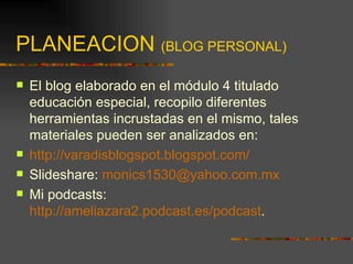 Este documento presenta una planeación para trabajar con niños con discapacidad auditiva utilizando la lengua de señas mexicana. La planeación incluye perfiles de egreso, evidencias de aprendizaje, actividades como visualizar videos del alfabeto manual y lectura con lenguaje manual, y recursos como auxiliares auditivos y referentes visuales. El objetivo es que los niños se comuniquen funcionalmente y que la comunidad escolar aprenda la lengua de señas para integrar a los estudiantes.