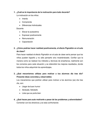El documento presenta una actualización de los programas de estudios elaborado por Gertrudis Roa y facilitado por la profesora Ana Pineda en 2012 para el Ministerio de Educación de Panamá. Incluye actividades para discutir temas como la motivación docente, el efecto Pigmalión y las expectativas en los resultados del aprendizaje, así como instrucciones para desarrollar un mapa conceptual y explicar indicadores de logro.