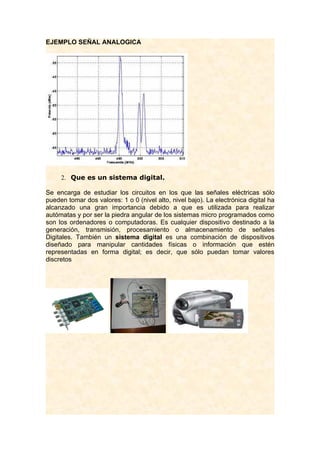 Este documento presenta las actividades de la Unidad 1 sobre Fundamentos de Electrónica Digital. Explica conceptos clave como sistemas analógicos y digitales, y sus diferencias. También describe convertidores analógico-digitales y digital-analesogicos, compuertas lógicas y tablas de verdad. El objetivo es que los estudiantes comprendan los fundamentos de la electricidad y puedan identificar diferentes magnitudes eléctricas.
