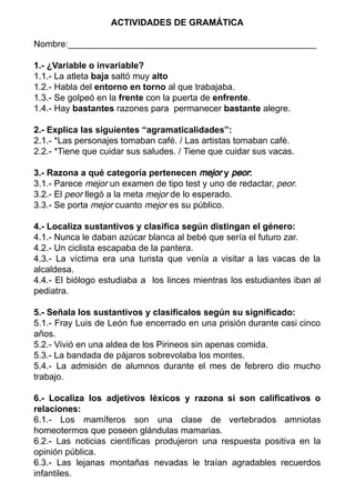 ACTIVIDADES DE GRAMÁTICA