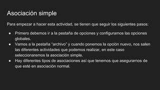 El documento describe los pasos para crear diferentes tipos de actividades usando la herramienta JClic, incluyendo asociación simple, completar textos, crucigramas, ordenar párrafos, respuesta escrita, rompecabezas y sopa de letras. Para cada actividad, explica los pasos de editar el contenido, generar la actividad automáticamente y guardarla con un nombre y descripción.