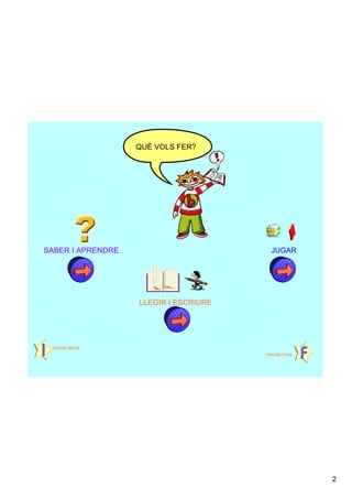 Este documento presenta un programa educativo interactivo sobre la ilustradora Mercè Arànega y sus cuentos. Los usuarios pueden conocer la biografía de Arànega, escuchar canciones de los personajes, ver ilustraciones con sonido, ordenar frases de historias, y participar en juegos y actividades. El objetivo es que los niños exploren el mundo creativo de Arànega a través de la lectura y la imaginación.