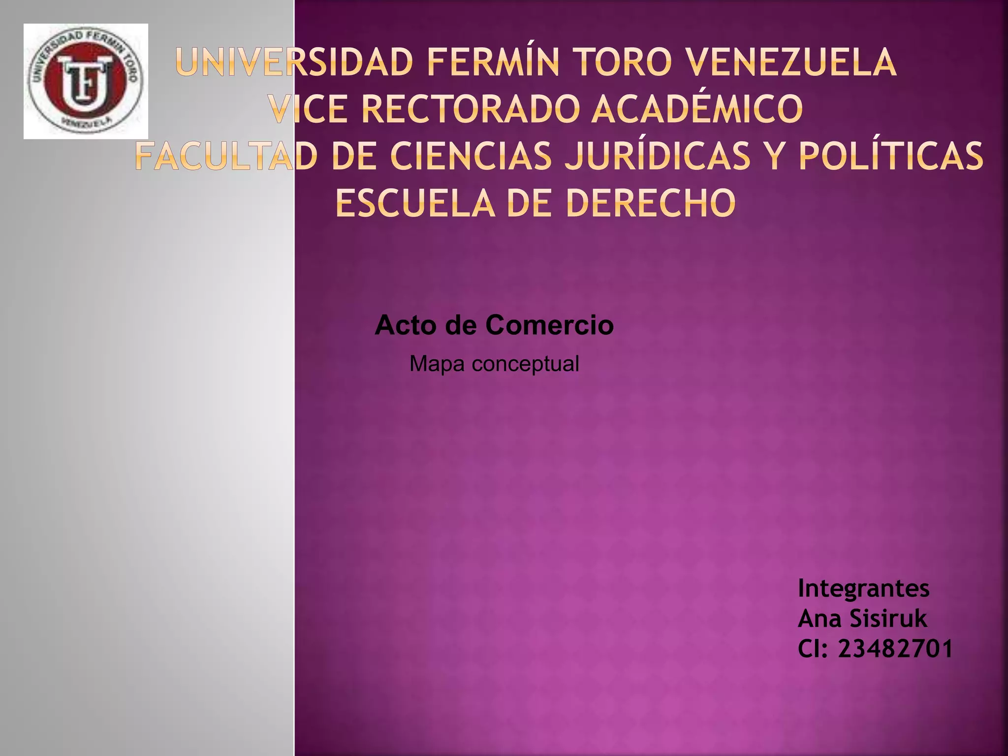 El documento define el acto de comercio y explica que es todo intercambio de bienes o servicios entre partes que obtienen beneficio. Clasifica los actos de comercio en objetivos o subjetivos dependiendo de si se considera la naturaleza del acto o la calidad comercial de las partes. También describe las teorías económicas y legales del concepto de acto de comercio y define quiénes son comerciantes individuales o sociales.