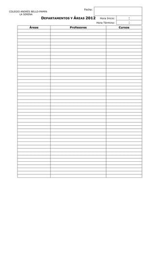 El documento presenta el calendario de actividades cívicas para el año 2012 en un colegio. Detalla las efemérides que se conmemorarán por curso, las acciones planeadas como paneles informativos o actos cívicos, y los lugares donde tendrán lugar. Además, incluye las fechas de las actividades sugeridas para los distintos departamentos y áreas del establecimiento.