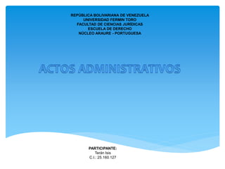 Este documento describe los elementos esenciales de un acto administrativo, incluyendo la competencia del órgano, la voluntad, el contenido, los motivos, la finalidad y las formalidades. Explica que estos cinco primeros elementos constituyen la "legalidad interna o material" del acto administrativo, mientras que las formalidades constituyen la "legalidad externa o formal". También define conceptos clave como los motivos, la finalidad y los efectos de un acto administrativo.