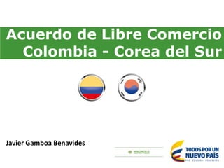 Este documento resume las principales características y oportunidades del Acuerdo de Libre Comercio entre Colombia y Corea del Sur. El acuerdo brindará a Colombia acceso preferencial al mercado coreano para productos agrícolas como café, flores, frutas y hortalizas, así como productos industriales como confecciones y cosméticos. También promoverá la inversión coreana en Colombia y la cooperación en áreas como agricultura, pesca y ciencia y tecnología.