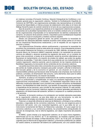 Este documento presenta el Acuerdo Marco del Comercio (AMAC) firmado entre organizaciones empresariales y sindicatos del sector del comercio en España. El AMAC tiene como objetivo modernizar las relaciones laborales en el sector a través de la negociación colectiva y encontrar formas de impulsar el empleo y la flexibilidad negociada en un contexto de crisis económica. El acuerdo también busca mejorar los sistemas de formación, mediación y cualificaciones profesionales en el sector del comercio.