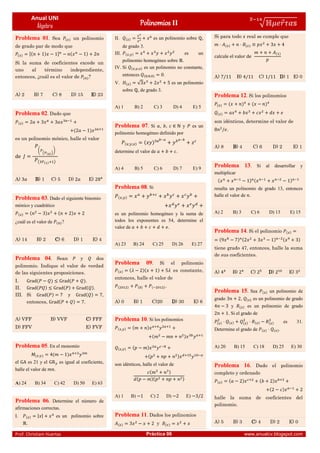 A) VFF B) VVF C) FFF Problema 10. Si los polinomios es 31.