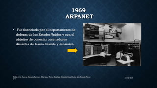 El documento resume la historia del Internet en México desde 1969 hasta el 2000. En 1969, la Agencia de Proyectos de Investigación Avanzada (ARPA) financió la creación de ARPANET para conectar computadoras a distancia de forma flexible. En 1983, la interconexión de ARPANET, CSNET y MILNET creó la red de redes llamada Internet. En 1989, el Instituto Tecnológico de Monterrey estableció la primera conexión a Internet en México con la Universidad de Texas en San Antonio.