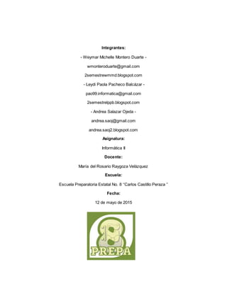 Este documento presenta información sobre la fotosíntesis. En resumen, explica que la fotosíntesis es el proceso mediante el cual las plantas, algas y bacterias utilizan la energía de la luz del sol, dióxido de carbono y agua para producir glucosa y oxígeno. También describe que la clorofila es el pigmento verde que permite a las plantas absorber la luz necesaria para la fotosíntesis y que existen diferentes tipos de clorofila. Finalmente, resume que la fotosíntesis convierte la energ