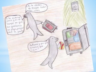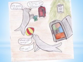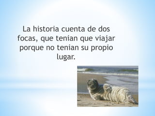 Dos focas tenían que viajar porque no tenían su propio lugar para vivir. El documento es una presentación preparada por dos estudiantes polacas sobre la historia de dos focas.