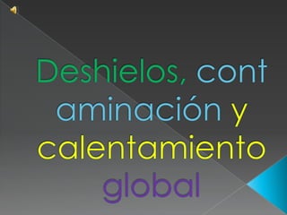 El documento resume los conceptos de calentamiento global, deshielos, causas humanas como la contaminación, y consecuencias como la pérdida de hábitat para osos polares y comunidades humanas vulnerables. Explica que el calentamiento global causa deshielos a través del efecto invernadero y la contaminación, amenazando especies y formas de vida que dependen del hielo y el clima estable.