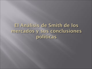 El documento resume las principales ideas y contribuciones de Adam Smith como padre de la economía clásica. Smith analizó el funcionamiento de los mercados competitivos y cómo estos asignan recursos de manera eficiente. Abogó por una política de laissez-faire y minimización de la intervención gubernamental. Explicó conceptos como la división del trabajo, la acumulación de capital, los salarios y las ganancias. Sin embargo, sus teorías sobre la formación de precios y la distribución del ingreso contenían inconsistencias.