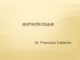 El documento describe los diferentes procesos de adaptación celular como la hiperplasia (aumento del número de células), hipertrofia (aumento del tamaño celular), atrofia (disminución del tamaño o número de células), y metaplasia (cambio del tipo celular). También discute conceptos como displasia, trastornos del desarrollo, y teratología.