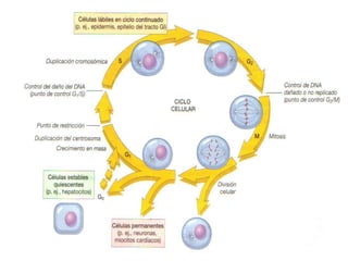 El documento detalla los procesos de adaptación celular frente a agresiones, incluyendo hiperplasia, hipertrofia, atrofia y metaplasia, cada uno con sus respectivas causas y mecanismos. Se exploran fenómenos que no son adaptaativos como displasia y trastornos del desarrollo, así como la etiología y fisiopatología subyacentes. Finalmente, se aborda la teratología y los efectos de agentes externos en el desarrollo fetal.
