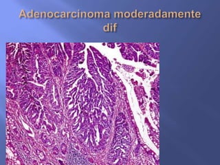 El documento aborda temas relacionados con la anatomía patológica del cáncer gastrointestinal, destacando distintos tipos de neoplasias y sus características histológicas. También menciona factores de riesgo, métodos de tamizaje y tratamientos para el cáncer colorrectal, así como conceptos de epigenética y pronóstico asociado a variantes histológicas. Además, se explora el contexto cultural del Renacimiento, enfatizando el cambio de un enfoque teocéntrico a uno antropocéntrico en el arte y la ciencia.