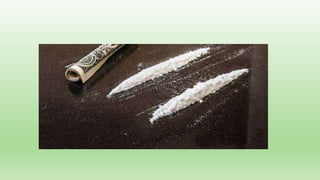 Este documento describe diferentes tipos de adicciones, incluyendo alcoholismo, cocaína, cannabis, benzodiacepinas, heroína y opiáceos, tabaco y comportamientos adictivos. También explica las causas como curiosidad, prescripciones médicas, presiones de la vida, promesas de mejorar el desempeño, exposición a adictos, acceso fácil y presión de grupo. Finalmente, detalla las etapas de iniciación, afirmación, necesidad y deterioro, así como las consecuencias como gran afectación al c