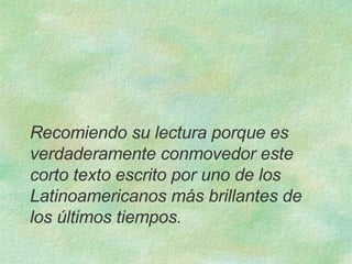 Gabriel García Márquez se ha retirado de la vida pública debido a un cáncer linfático. En una carta de despedida a sus amigos, expresa su deseo de aprovechar al máximo cualquier tiempo extra que le quede de vida, apreciando las pequeñas cosas y pasando tiempo con sus seres queridos. Recomienda vivir sin arrepentimientos y expresar el amor a los demás.