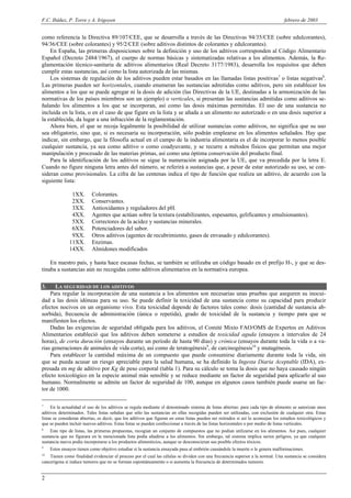 Este documento trata sobre los aditivos alimentarios. Explica que originalmente se añadían sustancias a los alimentos de forma empírica para mejorar su sabor o conservación, pero que ahora se regulan estrictamente. Detalla que organismos internacionales como la FAO y la UE establecen listas de aditivos permitidos y regulan su uso y dosis máximas. También expone que los aditivos deben someterse a pruebas toxicológicas rigurosas para asegurar su inocuidad antes de ser aprobados.